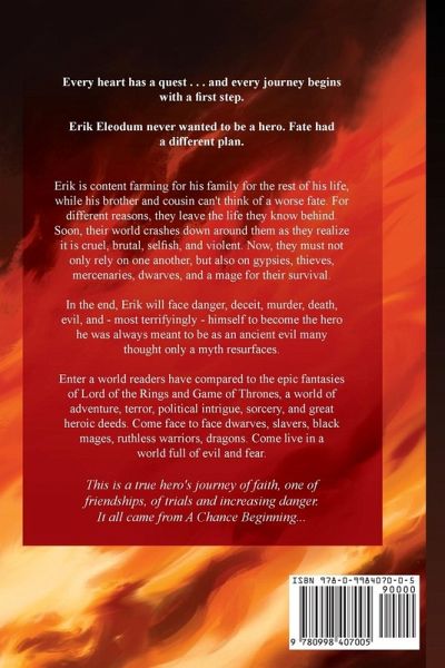 Erik Eleodum never wanted to be a hero. Fate had a different plan. Erik will face danger, deceit, murder, death, evil, and - most terrifyingly - himself to become the hero he was always meant to be. Erik is content farming for his family for the rest of his life, while his brother and cousin can't think of a worse fate. For different reasons, they leave the life they know behind. Soon, their world crashes down around them as they realize it is cruel, brutal, selfish, and violent. Now, they must not only rely on one another, but also on gypsies, thieves, mercenaries, dwarves, and a mage for their survival. In the end, Erik will face danger, deceit, murder, death, evil, and - most terrifyingly - himself to become the hero he was always meant to be as an ancient evil many thought only a myth resurfaces. Enter a world readers have compared to the epic fantasies of Lord of the Rings and Game of Thrones, a world of adventure, terror, political intrigue, sorcery, and great heroic deeds. Come face to face with ogres, elves, dwarves, slavers, black mages, ruthless warriors, dragons, evil and fear. A true hero's journey of faith, friendships, and trials well worth the price of admission!
