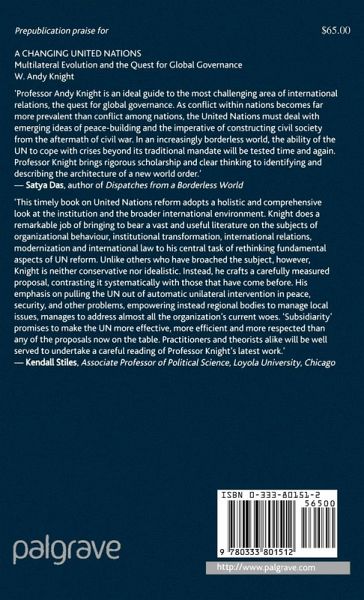 'Professor Andy Knight is an ideal guide to the most challenging area of international relations, the quest for global governance. As conflict within nations becomes far more prevalent than conflict among nations, the United Nations must deal with emerging ideas of peace-building and the imperative of constructing civil society from the aftermath of civil war. In an increasingly borderless world, the ability of the UN to cope with crises beyond its traditional mandate will be tested time and again. Professor Knight brings rigorous scholarship and clear thinking to identifying and describing the architecture of a new world order.' - Satya Das, author of Dispatches from a Borderless World
