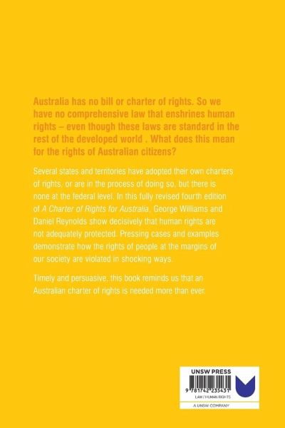 Australia does not have a bill or charter of rights, which means there is no comprehensive law that enshrines human rights in Australia - even though these laws are standard in the rest of the developed world. So what does this mean for the rights of Australian citizens? In this fully revised fourth edition of A Charter of Rights for Australia, George Williams and Daniel Reynolds show that human rights are not adequately protected in Australia, contrary to what many of us think. Using some pressing examples, they demonstrate how the rights of people at the margins of our society are violated in often shocking ways. Several states and territories have adopted their own charters of rights, or have a charter well underway. This book's argument that the time has come to adopt a charter at the federal level is more urgent than ever.