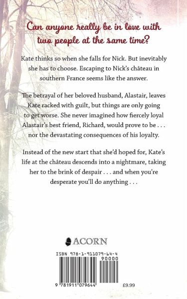 Can anyone really be in love with two people at the same time? Kate thinks so when she falls for Nick. But inevitably she has to choose. Escaping to Nick’s château in southern France seems like the answer. The betrayal of her beloved husband, Alastair, leaves Kate racked with guilt, but things are only going to get worse. She never imagined how fiercely loyal Alastair’s best friend, Richard, would prove to be… nor the devastating consequences of his loyalty. Instead of the new start that she’d hoped for, Kate’s life at the château descends into a nightmare, taking her to the brink of despair… and when you’re desperate you’ll do anything…