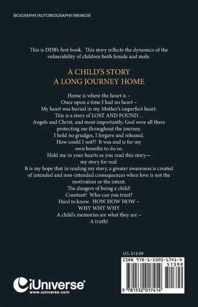 Dee Dee Brumm asks readers to hold her in their hearts as they read her memories of a childhood scarred by sexual abuse. It is a survivor’s story, the details unremembered until she grew to adulthood. Her story reflects the many dilemmas that a child faces, including dependency, the desire for independence, and the frustrations resulting from adult views of the child. Brumm addresses the vulnerabilities children experience and makes it clear that anger at a child can sometimes endanger that child’s life. The author hopes that after reading her true story, readers will have a greater awareness of the dangers that can mar a child’s life, and the unintended consequences of actions taken without love.