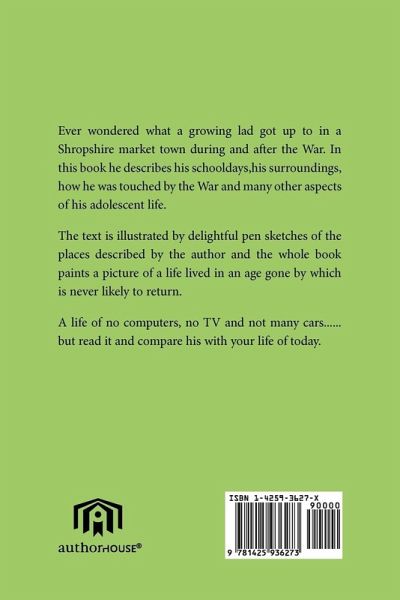 Ever wondered what a growing lad got up to in a Shropshire market town during and after the War.In this book he describes his schooldays,his surroundings,how he was touched by the War and many other aspects of his adolescent life. The text is illustrated by delightful pen sketches of the places described by the author and the whole book paints a picture of a life lived in an age gone by which is never likely to return. A life of no computers,no TV and not many cars......but read it and compare his with your life of today.