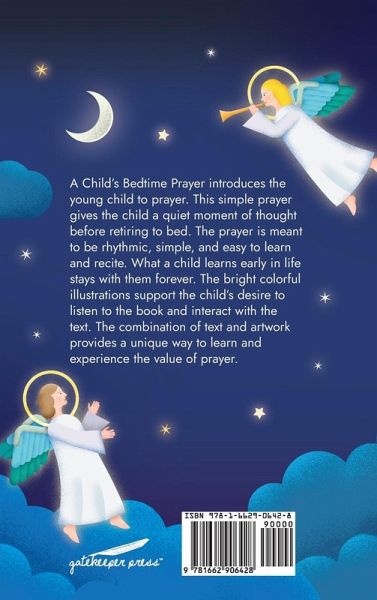 A Child's Bedtime Prayer introduces the young child to prayer. This simple prayer gives the child a quiet moment of thought before retiring to bed. The prayer is meant to be rhythmic, simple, and easy to learn and recite. What a child learns early in life stays with them forever. The bright colorful illustrations support the child's desire to listen to the book and interact with the text. The combination of text and artwork provides a unique way to learn and experience the value of prayer.