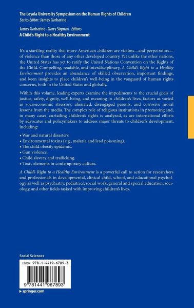 A Child's Right to a Healthy Environment is a powerful call to action for researchers and professionals in developmental, clinical child, school, and educational psychology as well as psychiatry, pediatrics, social work, general and special education, sociology, and other fields tasked with improving children's lives.