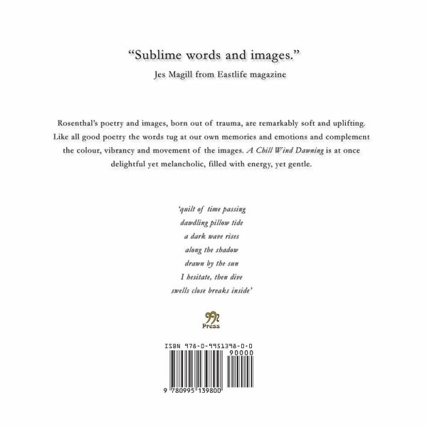 Rosenthal's poetry and images, born out of trauma, are remarkably soft and uplifting. Like all good poetry the words tug at our own memories and emotions and complement the colour, vibrancy and movement of the images. A Chill Wind Dawning is at once delightful yet melancholic, filled with energy, yet gentle.