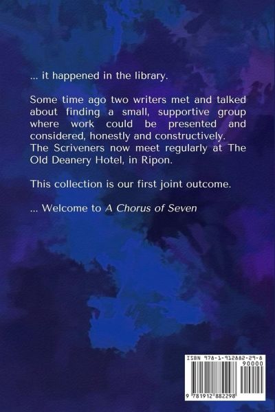 ... it happened in a library. Some time ago two writers met and talked about finding a small, supportive group where work could be presented and considered, honestly and constructively. The Scriveners now meet regularly at The Old Deanery Hotel, in Ripon. This collection is our first joint outcome. ... Welcome to A Chorus of Seven.