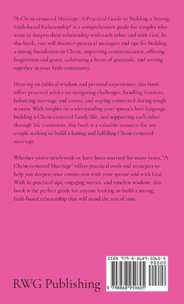 "A Christ-centered Marriage: A Practical Guide to Building a Strong, Faith-based Relationship" is a comprehensive guide for couples who want to deepen their relationship with each other and with God. In this book, you will discover practical strategies and tips for building a strong foundation on Christ, improving communication, offering forgiveness and grace, cultivating a heart of gratitude, and serving together in your faith community. Drawing on biblical wisdom and personal experiences, this book offers practical advice on navigating challenges, handling finances, balancing marriage and career, and staying connected during tough seasons. With insights on understanding your spouse's love language, building a Christ-centered family life, and supporting each other through life transitions, this book is a valuable resource for any couple seeking to build a lasting and fulfilling Christ-centered marriage. Whether you're newlyweds or have been married for many years, "A Christ-centered Marriage" offers practical tools and strategies to help you deepen your connection with your spouse and with God. With its practical tips, engaging stories, and timeless wisdom, this book is the perfect guide for anyone looking to build a strong, faith-based relationship that will stand the test of time.