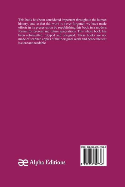 This book has been considered important throughout the human history, and so that this work is never forgotten we have made efforts in its preservation by republishing this book in a modern format for present and future generations. This whole book has been reformatted, retyped and designed. These books are not made of scanned copies and hence the text is clear and readable.