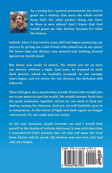 This gripping, true autobiography follows the spiritual life of a young boy devoted to Jesus Christ who is joined by a best friend, a companion with aspirations of a grand and valiant future. Together, they dream of embarking on a path of virtuous heroism which forges a deep and abiding friendship and sets the stage for what's to come. As the years pass, the boy begins to leave his faith and as a young man he meets another kindred spirit; a strange Jewish young man from the local Navajo reservation with a mysterious past. Together they set out into the world on an adventure brimming with thrilling escapades, heartfelt sentiment and profound sorrow until their adventurous spirit leads them astray when they chance upon a Ouija Board, a sinister artifact that becomes their undoing. As their curiosity in speaking with a malevolent demon from beyond this world persists for months, it begins to infect the young man's mind and soul with evil power, eventually driving him to become a meth addict. Alas, in a bizarre and harrowing spiritual experience unlike anything you've ever heard, the demon comes to him while asleep and opens a portal to Hell, transporting the young man into the depths of that infernal abyss. As he stands there, seeing it with his very own eyes, he knows that it is only his desperate cry to Jesus Christ that can save him. What follows is a powerful testament to faith, deliverance, and the truth of the Bible.