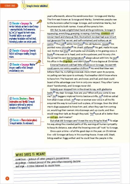 Scholastic's completely annotated set texts are designed to help students prepare for their closed book AQA GCSE English Literature examinations This A4-sized, full-colour, ready-annotated edition of Charles Dickens's A Christmas Carol is perfect for students. It includes * The full novella * Detailed annotations on each page * Definitions of tricky vocabulary * Organised lists of key quotations The full text of the novella is set on an easy-to-read cream background with wide margins on every page providing helpful annotations about the key information on that page. This takes the student step-by-step through the novella highlighting useful insights about the characters and plot as well as addressing the main themes and context. At the bottom of each page definitions are supplied to aid the understanding of unusual or archaic language used within the text. At the back of the book students will find a helpful guide to key quotations from the novella. Each quotation will reference where it appears in the novella as a whole and identified with an at-a-glance 'key' symbol. * Examination: English Literature * Specification: GCSE 9-1 * Set Text covered: A Christmas Carol by Charles Dickens * Type: Set Text - Complete Annotated About the novella: Miserly Ebenezer Scrooge is visited on Christmas Eve by the three ghosts of Christmas. They show him the joy of Christmas, and wretchedness of his own legacy. Inspired and chastened by what he has seen, Scrooge resolves to change and from then on embraces and promotes the true spirit of Christmas with kindness, generosity and warmth. Scholastic have everything you need to succeed with your AQA English Literature examination including study guides, annotation-friendly editions, revision cards and essay planners. Truly the most comprehensive support for GCSE English available!