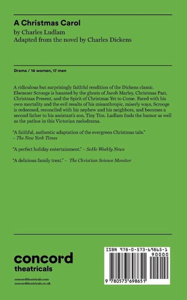 A ridiculous but surprisingly faithful rendition of the Dickens classic. Ebenezer Scrooge is haunted by the ghosts of Jacob Marley, Christmas Past, Christmas Present, and the Spirit of Christmas Yet to Come. Faced with his own mortality and the evil results of his misanthropic, miserly ways, Scrooge is redeemed, reconciled with his nephew and his neighbors, and becomes a second father to his assistant's son, Tiny Tim. Ludlam finds the humor as well as the pathos in this Victorian melodrama.