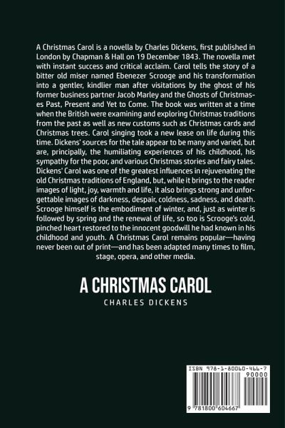 Do you want to read A Christmas Carol? If so then keep reading... A Christmas Carol is a novella by Charles Dickens, first published in London by Chapman & Hall on 19 December 1843. The novella met with instant success and critical acclaim. Carol tells the story of a bitter old miser named Ebenezer Scrooge and his transformation into a gentler, kindlier man after visitations by the ghost of his former business partner Jacob Marley and the Ghosts of Christmases Past, Present and Yet to Come. The book was written at a time when the British were examining and exploring Christmas traditions from…mehr