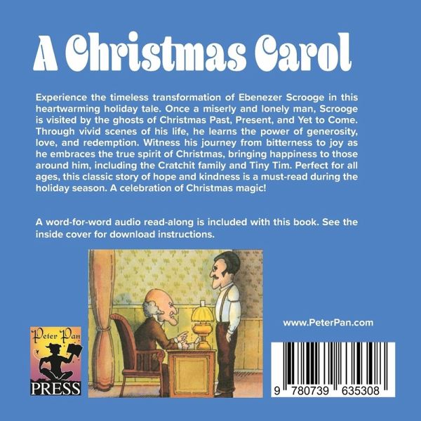 Experience the timeless transformation of Ebenezer Scrooge in this heartwarming holiday tale. Once a miserly and lonely man, Scrooge is visited by the ghosts of Christmas Past, Present, and Yet to Come. Through vivid scenes of his life, he learns the power of generosity, love, and redemption. Witness his journey from bitterness to joy as he embraces the true spirit of Christmas, bringing happiness to those around him, including the Cratchit family and Tiny Tim. Perfect for all ages, this classic story of hope and kindness is a must-read during the holiday season. A celebration of Christmas magic! A word-for-word audio read-along is included with this book. See the inside cover for download instructions.