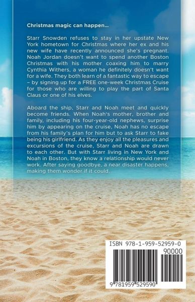 Christmas magic can happen... Starr Snowden refuses to stay in her upstate New York hometown for Christmas where her ex-boyfriend and his new wife have recently announced she's pregnant. Noah Jordan doesn't want to spend another Boston Christmas with his mother coaxing him to marry Cynthia Withers, a woman he definitely doesn't want for a wife. They both learn of a fantastic way to escape - by signing up for a FREE one-week Christmas Cruise for those who are willing to play the part of Santa Claus or one of his elves. Aboard the ship, Starr and Noah meet and quickly become friends. When Noah's mother, brother and family, including his four-year-old nephews, surprise him by appearing on the cruise, Noah has no escape from his family's plan for him but to ask Starr to fake being his girlfriend. As they enjoy all the pleasures and excursions of the cruise, Starr and Noah are drawn to each other. But with Starr living in New York and Noah in Boston, they know a relationship would never work. After saying goodbye, a near disaster happens, making them wonder if it could.