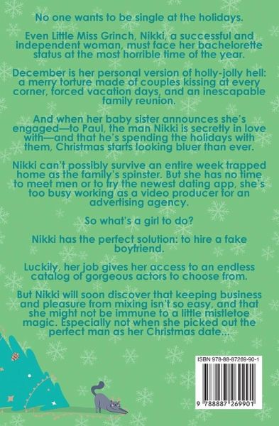 No one wants to be single at the holidays. Even Little Miss Grinch, Nikki, a successful and independent woman, must face her bachelorette status at the most horrible time of the year. December is her personal version of holly-jolly hell: a merry torture made of couples kissing at every corner, forced vacation days, and an inescapable family reunion. And when her baby sister announces she's engaged-to Paul, the man Nikki is secretly in love with-and that he's spending the holidays with them, Christmas starts looking bluer than ever. Nikki can't possibly survive an entire week trapped home as the family's spinster. But she has no time to meet men or to try the newest dating app, she's too busy working as a video producer for an advertising agency. So what's a girl to do? Nikki has the perfect solution: to hire a fake boyfriend. Luckily, her job gives her access to an endless catalog of gorgeous actors to choose from. But Nikki will soon discover that keeping business and pleasure from mixing isn't so easy, and that she might not be immune to a little mistletoe magic. Especially not when she picked out the perfect man as her Christmas date...