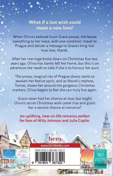 What if a last wish could mean a new love? When Olivia's beloved Aunt Grace passes, she leaves everything to her niece, with one condition: Travel to Prague and deliver a message to Grace's long-lost true love, Marek. The trouble is, Olivia's world is getting smaller. Since her husband left her one heartbreaking Christmas Eve, she has found even getting into town a challenge, let alone travelling by herself to a different country. But this is one adventure she has to take, if she is to honour Grace. The snowy, magical city of Prague slowly starts to awaken her festive spirit, and as Marek's nephew, Tomas, shows her around the gorgeous Christmas markets, Olivia begins to feel she can truly live again. Grace never had her chance at love, but might Olivia's secret Christmas wish come true and grant her a second chance at romance? A heartwarming, uplifting second-chance romance perfect for fans of Milly Johnson and Julie Caplin. Praise for Helga Jensen: 'I simply couldn't put this down. I laughed out loud several times before I'd even finished the first chapter.' Jules Wake 'A joyous tale of rediscovering your dreams, love and sense of self. Sheer fun and absolute UpLit!' Pernille Hughes 'I love this book so much! All I wanted was for it not to end! It's right there on my top romcoms list now.' Natalie Normann 'I would highly recommend this fabulous book which is full of the trials and tribulations of family life, love, drama and intrigue together with lovable characters that you don't want to leave behind when the book ends.' Rosy Gee 'I did not want it to end, I fell in love with the characters and this is my favourite rom com of the year!...I am absolutely in love with this book... This story reached into my heart, broke it and put it back together.' ¿¿¿¿¿Reader Review 'I loved the characters...A really sweet book with some twists and turns, and a perfect ending. Highly recommend for curling up on the sofa with a mug of hot chocolate.' ¿¿¿¿¿Reader Review 'Love how this author writes about real people and relatable issues and targets those in their 40s and 50s in their stories. This was so much more than just a romantic read.' ¿¿¿¿¿Reader Review 'A charming, funny story... Ideal sunshine reading.' ¿¿¿¿¿Reader Review 'I loved every page and still think about the characters... lots of laugh-out-loud moments to be enjoyed' ¿¿¿¿¿Reader Review 'A beautiful story ... well worth 5 stars and I recommend this great summer read.' ¿¿¿¿¿Reader Review 'Wow, just wow ... It's funny, cute and romantic and that twist... What more can you ask for?' ¿¿¿¿¿Reader Review