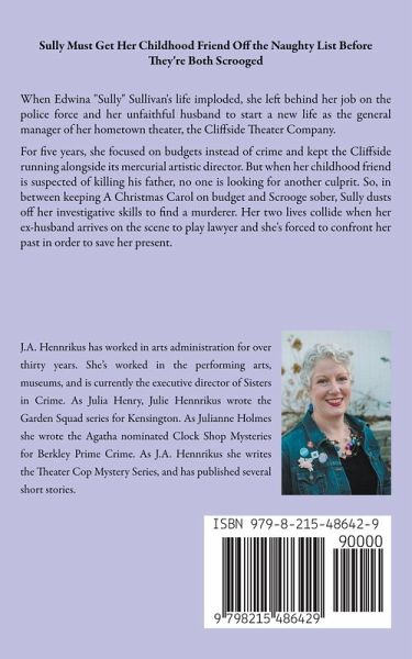 Sully Must Get Her Childhood Friend Off the Naughty List Before They're Both Scrooged When Edwina "Sully" Sullivan's life imploded, she left behind her job on the police force and her unfaithful husband to start a new life as the general manager of her hometown theater, the Cliffside Theater Company. For five years, she focused on budgets instead of crime and kept the Cliffside running alongside its mercurial artistic director. But when her childhood friend is suspected of killing his father, no one is looking for another culprit. So, in between keeping A Christmas Carol on budget and Scrooge sober, Sully dusts off her investigative skills to find a murderer. Her two lives collide when her ex-husband arrives on the scene to play lawyer and she's forced to confront her past in order to save her present.