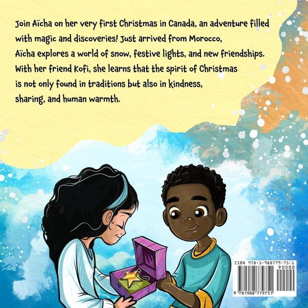 The Power of Kindness - A Christmas to Share Dive into an unforgettable story where the magic of Christmas meets the richness of Moroccan traditions, in a celebration of friendship and kindness that transcends borders. Perfect for children aged 6 to 9. Aïcha, a seven-year-old girl, leaves her homeland for Canada, saying goodbye to her friends and her father. This new beginning is filled with curiosity and wonder. Through her eyes, discover a unique Christmas marked by her encounter with Kofi, her new friend, and his family, who invite her to celebrate this magical holiday. Let yourself be transported by this touching story, where Aïcha and her mother share precious moments: they decorate a Christmas tree, try new holiday traditions, and create beautiful memories with their new friends. A Christmas to Share explores the beauty of open-mindedness and the importance of human connections, offering young readers a journey into diversity, generosity, and kindness. An ideal gift for families wishing to reinforce values of kindness, sharing, and acceptance. Offer your children a touching and educational story, perfect for opening minds and hearts. A Christmas to Share is more than just a Christmas story - it's an invitation to discover the richness of our differences and to celebrate the bonds that unite us. A must-read for children aged 6 to 9, to enjoy year after year, inspiring them with the spirit of Christmas and the values of friendship and inclusion. A memorable gift for magical family reading moments!