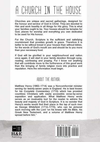 Matthew Henry (1662-1714) lays a foundation for the necessity of family worship or what he calls "a church in the house." He sets forth the practical steps for the husband to lead his family in this blessed endeavor. This is a completely new reprint edition by H&E with some updates and easy to read formatting.