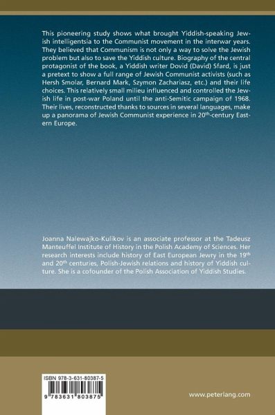 This pioneering study shows what brought Yiddish-speaking Jewish intelligentsia to the Communist movement in the interwar years. They believed that Communism is not only a way to solve the Jewish problem but also to save the Yiddish culture. Biography of the central protagonist of the book, a Yiddish writer Dovid (David) Sfard, is just a pretext to show a full range of Jewish Communist activists (such as Hersh Smolar, Bernard Mark, Szymon Zachariasz, etc.) and their life choices. This relatively small milieu influenced and controlled the Jewish life in post-war Poland until the anti-Semitic campaign of 1968. Their lives, reconstructed thanks to sources in several languages, make up a panorama of Jewish Communist experience in 20th-century Eastern Europe.