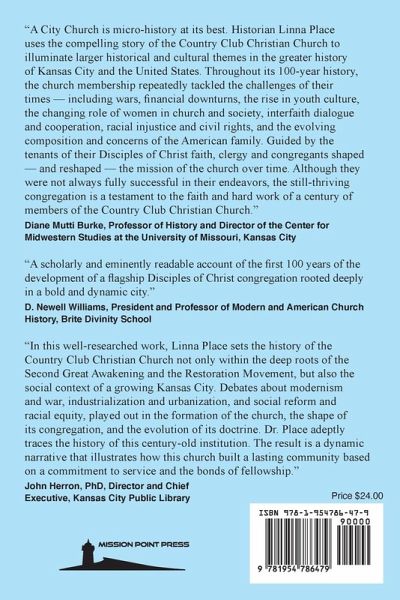 A City Church: The First Century of Service is the history of Country Club Christian Church, a Disciples of Christ congregation in Kansas City, Missouri that emerged from the 19th Century Restoration Movement. The account examines the Church's story throughout the 20th century in the context of the larger social, cultural, and economic currents present in the city and nation throughout its existence. The stately Gothic revival building, built during an era of suburbanization, has been an anchor and locus of discussion and action for such community issues as Pendergast-era machine politics, racial crisis, and urban change. Through the years the Church, as an institution and a community of faith, intersected with wars, Civil Rights and racial conflict, and the evolving role of women. As a religious institution that has continued to thrive in a time of declining church presence in American society, the saga of Country Club Christian Church considers how it has affirmed tradition while changing in a way that allows it to "be church" in a contemporary world.