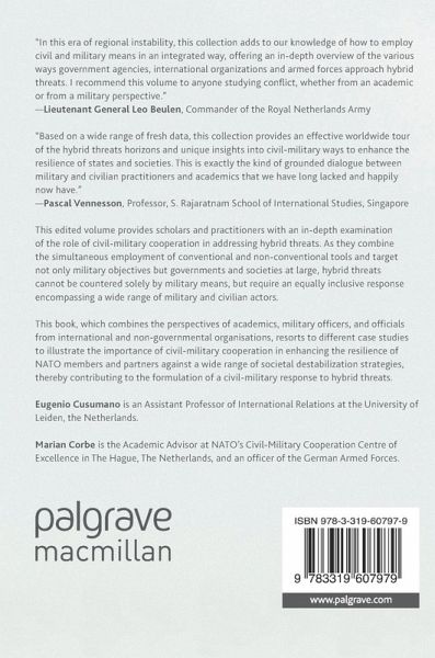Environmental Understanding in Mali Sebastian Rietjens.- Chapter 9:A Military Contribution to State Resilience: Afghanistan and Lebanon Nick Pounds Iyad El Alam, and Rudolf Keijzer.- Chapter 10: Cyber War in Perspective: Lessons from the Ukrainian Conflict Henry Roigas.- Chapter 11: Non-Linear Warfare in the Baltic Region: Strengthening NATO's Eastern Flank James Rogers.- Chapter 12: Civil-Military Responses to Hybrid Threats in East Asia Andrew Gawthorpe.- Chapter 13: Conclusions Marian Corbe and Eugenio Cusumano.