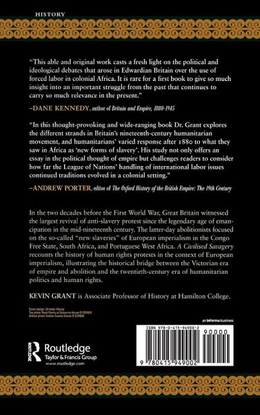 In the two decades before World War One, Great Britain witnessed the largest revival of anti-slavery protest since the legendary age of emancipation in the mid-nineteenth century. Rather than campaigning against the trans-Atlantic slave trade, these latter-day abolitionists focused on the so-called 'new slaveries' of European imperialism in Africa, condemning coercive systems of labor taxation and indentured servitude, as well as evidence of atrocities. A Civilized Savagery illuminates the multifaceted nature of British humanitarianism by juxtaposing campaigns against different forms of imperial labor exploitation in three separate areas: the Congo Free State, South Africa, and Portuguese West Africa. In doing so, Kevin Grant points out how this new type of humanitarianism influenced the transition from Empire to international government and the advent of universal human rights in subsequent decades.