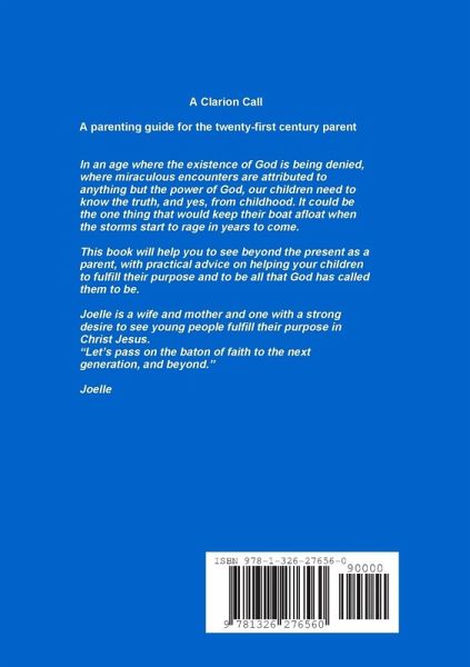 A parenting guide for the twenty-first century parent In an age where the existence of God is being denied, where miraculous encounters are attributed to anything but the power of God, our children need to know the truth, and yes, from childhood. It could be the one thing that would keep their boat afloat when the storms start to rage in years to come. This book will help you to see beyond the present as a parent, with practical advice on helping your children to fulfill their purpose and to be all that God has called them to be. Joelle is a wife and mother and one with a strong desire to see young people fulfill their purpose in Christ Jesus. "Let's pass on the baton of faith to the next generation, and beyond." Joelle