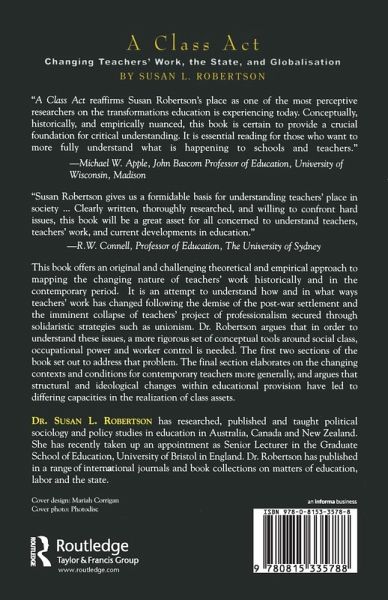 This book offers an original and challenging theoretical and empirical approach to mapping the changing nature of teachers' work historically and in the contemporary period. It is an attempt to understand how and in what ways teachers' work has changed following the demise of the post-war settlement and the imminent collapse of teachers' project of professionalism secured through solidaristic strategies such as unionism. Dr. Robertson argues that in order to understand these issues, a more rigorous set of conceptual tools around social class, occupational power and worker control is needed. The first two sections of the book set out to address that problem. The final section elaborates on the changing contexts and conditions for contemporary teachers more generally, and argues that structural and ideological changes within educational provision have led to differing capacities in the realization of class assets.