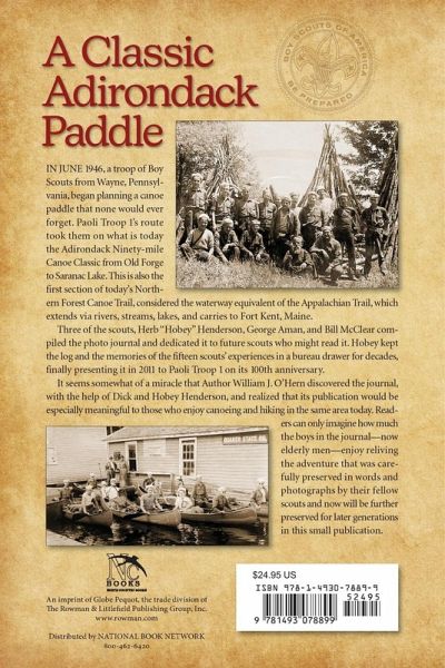 In June 1946, a troop of Boy Scouts from Wayne, Pennsylvanian began planning a canoe paddle that none would ever forget. Paoli Troop 1’s route took them on what is today the Adirondack Ninety-mile Canoe Classic from Old Forge to Saranac Lake. This is also the first section of today’s Northern Forest Canoe Trail, considered the waterway equivalent of the Appalachian Trail, which extends via rivers, streams, lakes, and carries to Fort Kent, Maine. Three of the scouts, Herb "Hobey" Henderson, George Aman, and Bill McClear compiled the photo journal and dedicated it to future scouts who might read it. Hobey kept the log and the memories of the fifteen scouts’ experiences in a bureau drawer for decades, finally presenting it in 2011 to Paoli Troop 1 on its 100th anniversary. It seems somewhat of a miracle that Author William J. O’Hern discovered the journal, with the help of Dick and Hobey Henderson, and realized that its publication would be especially meaningful to those who enjoy canoeing and hiking in the same area today. Readers can only imagine how much the boys in the journal – now elderly men – enjoy reliving the adventure that was carefully preserved in words and photographs by their fellow scouts and now will be further preserved for later generations in this small publication.