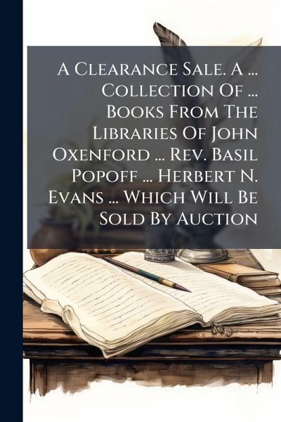 This is a catalog of a clearance sale featuring a collection of books from the libraries of John Oxenford, Rev. Basil Popoff, Herbert N. Evans, and others. The catalog details the books that were sold at auction. It provides valuable insights into the tastes and collections of notable figures of the time. A fascinating glimpse into the world of rare and antiquarian books, this collection offers a unique window into the literary and intellectual landscape of the past. For collectors, historians, and anyone with an interest in the history of books, this catalog provides a detailed record of a significant auction event. This work has been selected by scholars as being culturally important, and is part of the knowledge base of civilization as we know it. This work was reproduced from the original artifact, and remains as true to the original work as possible. Therefore, you will see the original copyright references, library stamps (as most of these works have been housed in our most important libraries around the world), and other notations in the work. This work is in the public domain in the United States of America, and possibly other nations. Within the United States, you may freely copy and distribute this work, as no entity (individual or corporate) has a copyright on the body of the work. As a reproduction of a historical artifact, this work may contain missing or blurred pages, poor pictures, errant marks, etc. Scholars believe, and we concur, that this work is important enough to be preserved, reproduced, and made generally available to the public. We appreciate your support of the preservation process, and thank you for being an important part of keeping this knowledge alive and relevant.
