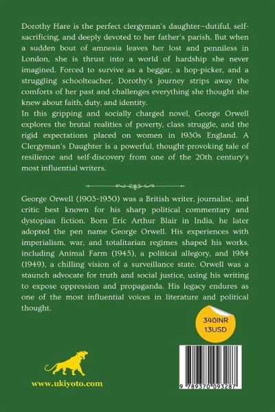 Dorothy Hare is the perfect clergyman's daughter-dutiful, self-sacrificing, and deeply devoted to her father's parish. But when a sudden bout of amnesia leaves her lost and penniless in London, she is thrust into a world of hardship she never imagined. Forced to survive as a beggar, a hop-picker, and a struggling schoolteacher, Dorothy's journey strips away the comforts of her past and challenges everything she thought she knew about faith, duty, and identity. In this gripping and socially charged novel, George Orwell explores the brutal realities of poverty, class struggle, and the rigid expectations placed on women in 1930s England. A Clergyman's Daughter is a powerful, thought-provoking tale of resilience and self-discovery from one of the 20th century's most influential writers.