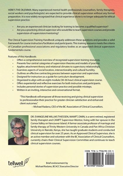 HERE'S THE DILEMMA: Many experienced mental health professionals (counsellors, family therapists, social workers and psychologists) are expected to provide clinical supervision without any formal preparation. It is now widely recognized that clinical experience alone is no longer adequate for ethical supervision practice.¿ Are you an experienced clinician looking for training to become a qualified supervisor?¿ Are you a practicing clinical supervisor who would like to teach supervision courses and provide supervision-of-supervision/mentoring?The Clinical Supervision Training Handbook uniquely addresses these questions and provides a solid framework for course instructors/facilitators and participants. This training resource meets the criteria of Canadian professional associations and regulatory bodies as an approved clinical supervision fundamentals course.Features of this Handbook:¿ Offers a comprehensive overview of recognized supervision training resources.¿ Presents four central categories of supervision theories and models of practice.¿ Applies attachment theory and relational climates to supervisory relationships.¿ Examines aspects of social location, intersectionality and cultural humility.¿ Outlines an effective contracting process between supervisor and supervisee.¿ Designed for instructors as a guide for curriculum development.¿ Organized to align with an eight-module (30-36 hour) clinical supervision course.¿ Offers experiential and reflective exercises for both instructors and participants.¿ Includes personal stories of supervision practice and possible missteps.¿ Written in an inviting, interactive and conversational format.