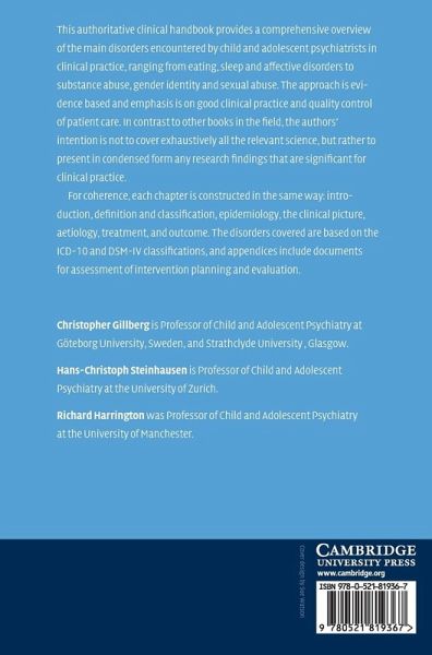 Originally published in 2006, this authoritative clinical handbook provides a detailed overview of the main disorders encountered by child and adolescent psychiatrists in clinical practice, ranging from eating, sleep and affective disorders to substance abuse, gender identity disorder and sexual abuse. The approach is evidence based and emphasis is on good clinical practice and quality control of patient care. In contrast to other books in the field, the authors' intention is not to cover exhaustively all the relevant science, but rather to present in condensed form any research findings that are significant for clinical practice. For coherence, each chapter is constructed in the same way: introduction, definition and classification, epidemiology, the clinical picture, aetiology, treatment and outcome. The disorders covered are based on the ICD- 10 and DSM-IV classifications, and appendices include documents for assessment of intervention planning and evaluation.