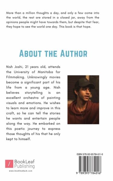 More than a million thoughts a day, and only a few come into the world, the rest are stored in a closed jar, away from the opinions people might have towards them, but despite that fear, they hope to see the world one day. This book is that hope.