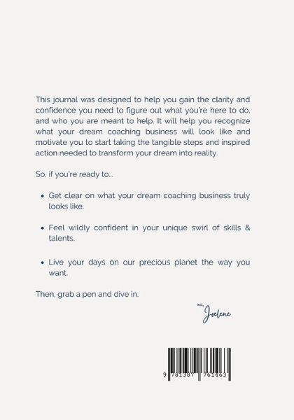 This guided journal was designed to help you gain the clarity and confidence you need to figure out what you're here to do, and who you are meant to help. It will help you recognize what your dream coaching business will look like and motivate you to start taking the tangible steps and inspired action needed to transform your dream into reality. So, if you're ready to... - Get clear on what your dream coaching business truly looks like. - Feel wildly confident in your unique swirl of skills & talents. - Live your days on our precious planet the way you want. Then, grab a pen and dive in.