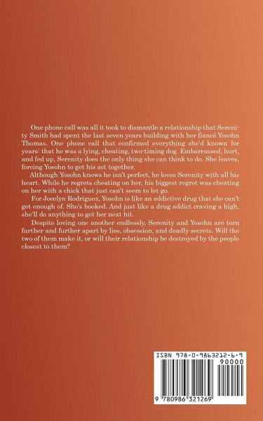 Play with fire, you get burned. Play with emotions, you get buried. One phone call was all it took to dismantle a relationship that Serenity Smith had spent the last seven years building with her fiancé Yosohn Thomas. One phone call that confirmed everything she'd known for years: that he was a lying, cheating, two-timing dog. Embarrassed, hurt, and fed up, Serenity does the only thing she can think to do. She leaves, forcing Yosohn to get his act together. Although Yosohn knows he isn't perfect, he loves Serenity with all his heart. While he regrets cheating on her, his biggest regret was cheating on her with a chick that just can't seem to let go. For Jocelyn Rodriguez, Yosohn is like an addictive drug that she can't get enough of. She's hooked. And just like a drug addict craving a high, she'll do anything to get her next hit. Despite loving one another endlessly, Serenity and Yosohn are torn further and further apart by lies, obsession, and deadly secrets. Will the two of them make it, or will their relationship be destroyed by the people closest to them?