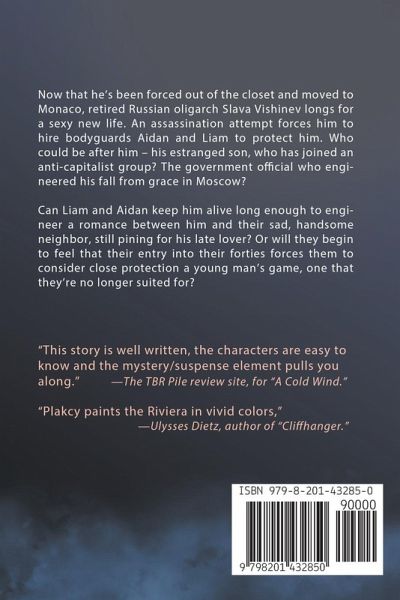 Now that he's been forced out of the closet and moved to Monaco, retired Russian oligarch Slava Vishinev longs for a sexy new life. An assassination attempt forces him to hire bodyguards Aidan and Liam to protect him. Who could be after him - his estranged son, who has joined an anti-capitalist group? The government official who engineered his fall from grace in Moscow? Can Liam and Aidan him alive long enough to engineer a romance between him and their sad, handsome neighbor, still pining for his late lover? Or will they begin to feel that their entry into their forties forces them to consider close protection a young man's game, one that they're no longer suited for?