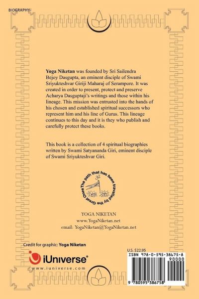 This book is a collection of 4 spiritual biographies written by Swami Satyananda Giri, eminent disciple of Swami Sriyukteshvar Giri. In this collection are the biographies of revered Yogiraj Shyama Charan Lahiri Mahasaya, as well as biographies of his disciples Yogacharya Shastri Mahasaya (Hansaswami Kebalananda) and Swami Sriyukteshvar Giriji Maharaj, as well as the biography of Paramahansa Yogananda entitled 'Yogananda Sanga."