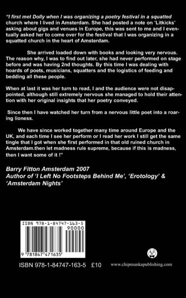 This is a collection of three books by Dolly Sen ISBN :978-1-84747-163-5 Book one THE BOOK OF TORN UP SUICIDE NOTES Book two THE MAENAD ANGEL POETICS Book Three ECCENTRIC FISH About the Author Dolly Sen was born on 23rd October 1970 in London, where she still lives. "I had my first psychotic experience aged 14 and stopped going to school. A series of dead end jobs followed. Pretty early on I decided I didn't want any more of the 9-5 shit and spoon race, and began to write. and maybe watch 70s cop shows." Dolly Sen is a writer, director, artist, film-maker, poet, performer, raconteur, playwright, mental health consultant, music-maker and public speaker. Since her much-acclaimed book 'The World is Full of Laughter' was published by Chipmunka in 2002, she has had 3 further books published, had a succession of performance roles around Europe and places like The Young Vic, Trafalgar Square and The Royal Festival Hall; did a poetry tour and won a poetry award from Andrew Motion; directed two plays and several films, appeared on TV, and has done spoken word at City Hall and Oxford University. This is staggering since she dropped out of school at 14 and has no formal qualifications. She has also had to share her life with severe mental health problems. She was told she would never amount to anything but would end up in jail or Broadmoor and she believed this and was on her way there when she changed her belief into the one of believing she could do anything she wanted to do. This proves that the mind is an amazing thing; it can drive you mad and inspire you in the same breath. And that you can do anything if you believe you can do it.