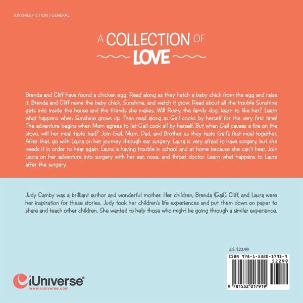 Brenda and Cliff have found a chicken egg. Read along as they hatch a baby chick from the egg and raise it. Brenda and Cliff name the baby chick, Sunshine, and watch it grow. Read about all the trouble Sunshine gets into inside the house and the friends she makes. Will Rusty, the family dog, learn to like her? Learn what happens when Sunshine grows up. Then read along as Gail cooks by herself for the very first time! The adventure begins when Mom agrees to let Gail cook all by herself. But when Gail causes a fire on the stove, will her meal taste bad? Join Gail, Mom, Dad, and Brother as they taste Gail's first meal together. After that, go with Laura on her journey through ear surgery. Laura is very afraid to have surgery, but she needs it in order to hear again. Laura is having trouble in school and at home because she can't hear. Join Laura on her adventure into surgery with her ear, nose, and throat doctor. Learn what happens to Laura after the surgery.