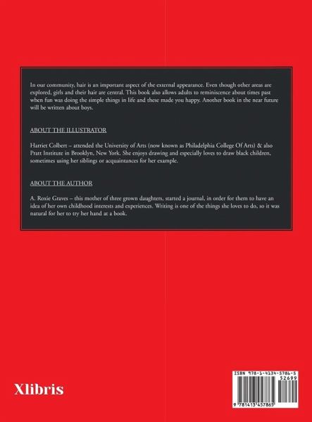 In our community, hair is an important aspect of the external appearance. Even though other areas are explored, girls and their hair are central. This book also allows adults to reminiscence about times past when fun was doing the simple things in life and these made you happy. Another book in the near future will be written about boys.