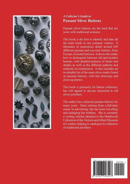 Peasant silver buttons are the kind that are worn with traditional costume. This book is the first to identify and date all the main kinds in one compact volume. It illustrates in meticulous detail around 600 different peasant and souvenir buttons, from Europe, Asia and America. It shows the reader how to distinguish between old and modern buttons, with detailed pictures of backs and shanks as well as the different patterns and methods of construction. It also includes an invaluable list of the main silver marks found on peasant buttons, with line drawings and close-up photos. This book is primarily for button collectors, but will appeal to anyone interested in old silver jewellery.