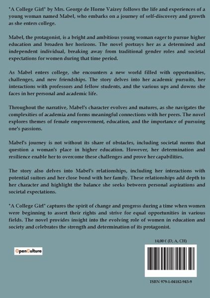 "A College Girl" by Mrs. George de Horne Vaizey is a narrative that explores the life of Darsie Garnett, a spirited young girl navigating the complexities of family dynamics and personal growth. The story begins with the Garnett family, consisting of six children, where Darsie, the second daughter, stands out due to her vivacious nature. The Garnetts live in Sandon Terrace, a modest neighborhood, and share a close relationship with the Vernons, their more affluent neighbors. The plot thickens when Lady Maria, an eccentric and wealthy aunt, decides to invite one of the Garnett girls to spend the summer with her, promising potential future benefits. This invitation causes a stir in the Garnett household, as it threatens to disrupt their much-anticipated holiday plans with the Vernons. Darsie, known for her charm and beauty, becomes the likely candidate for Lady Maria's invitation, much to her dismay. The narrative delves into the emotional turmoil and the sense of duty that the family faces, highlighting the tension between personal desires and familial obligations. As the story progresses, Darsie's journey takes her to Cambridge, where she attends Newnham College, a significant step in her academic and personal development. The novel captures her experiences, friendships, and the challenges she faces as a student. The story culminates in Darsie's academic achievements and her evolving relationship with Dan Vernon, a family friend who excels in his studies. The novel ends on a hopeful note, with Dan proposing to Darsie, symbolizing the shift from youthful adventures to mature commitments. "A College Girl" is a reflection on the themes of growth, responsibility, and the pursuit of one's aspirations amidst societal expectations.