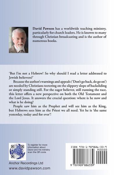 'But I'm not a Hebrew! So why should I read a letter addressed to Jewish believers?' Because the author's warnings and appeals ('Don't go back, do go on') are needed by Christians teetering on the slippery slope of backsliding or simply standing still. For the eager believer, still running the race, this letter offers a new perspective on both the Old Testament and the Lord Jesus. It answers the crucial question: where is he now and what is he doing? People saw him as the Prophet and will see him as the King, but Hebrews sees him as the Priest we all need. Yet he is 'the same yesterday, today and for ever'!