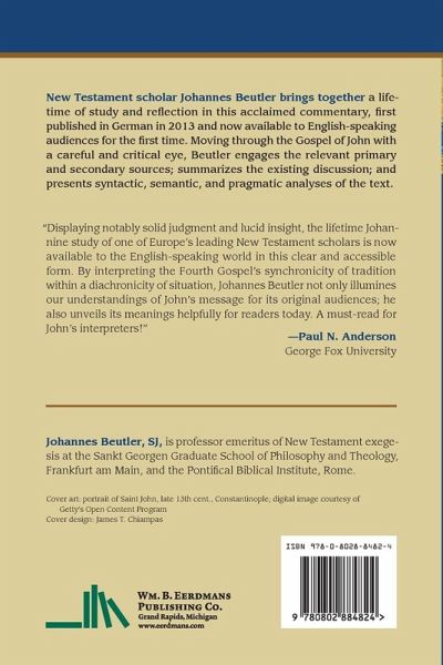 New Testament scholar Johannes Beutler brings together a lifetime of study and reflection in this acclaimed commentary, first published in German in 2013 and now available to English-speaking audiences for the first time. Moving through the Gospel of John with a careful and critical eye, Beutler engages the relevant primary and secondary sources; summarizes the existing discussion; and presents syntactic, semantic, and pragmatic analyses of the text. As he meticulously examines the Fourth Gospel, Beutler pays special attention to the influence of Old Testament and Early Jewish traditions, to the overall structure of the Gospel of John, and to evidence suggesting a later stratum of contextualized "re-readings" in the composition of the Gospel. Bold, literary, and theological, this volume represents a landmark work of German biblical scholarship.
