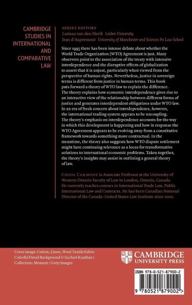 Since 1995 there has been intense debate about whether the WTO Agreement is just. Many observers point to the association of the treaty with intensive interdependence and the disruptive effects of globalization to assert that it is unjust. Nevertheless, justice in sovereign terms is different from justice in human terms. This book puts forward a theory of WTO law to explain the difference and its implications for the international trading system. It details how economic interdependence gives rise to an interdependent view of the relationship between different forms of justice and to interdependent obligations in WTO law. It also suggests how the WTO dispute settlement system might have a residual value as a locus for transformative outcomes despite contemporary concerns about the system's political acceptability. Taken together, such insights may assist in identifying elements of a general theory of law.