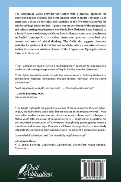 The Companion Guide provides the teacher with a practical approach for understanding and utilizing The River Quintet series in grades 7 through 12. It starts with a focus on the value and suitability of the five historical novels for middle and high school readers. It points out the correlation of the geographical and cultural settings (northeastern woodlands, New Netherland, early Hartford, CT, and England) to a Social Studies curriculum, and shows how its literary aspects can complement an English Language Arts curriculum. Assessment questions cover both plot content and areas of critical thinking. The Guide also suggests classroom activities for students of all abilities and concludes with an extensive reference section that contains websites of some of the Iroquois and Algonquin nations featured in the series.