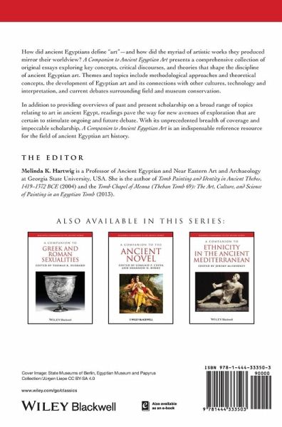- Features contributions from top scholars in their respective fields of expertise relating to ancient Egyptian art - Provides overviews of past and present scholarship and suggests new avenues to stimulate debate and allow for critical readings of individual art works - Explores themes and topics such as methodological approaches, transmission of Egyptian art and its connections with other cultures, ancient reception, technology and interpretation, - Provides a comprehensive synthesis on a discipline that has diversified to the extent that it now incorporates subjects ranging from gender theory to 'X-ray fluorescence' and 'image-based interpretations systems'