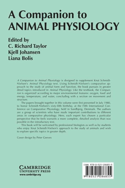 Originally published in 1982, this book was designed to supplement Knut Schmidt-Nielsen's Animal Physiology. Using Schmidt-Nielsen's comparative approach to the study of animal form function, the text pursues in greater detail topics introduced in Animal Physiology. Like the textbook, the Companion is organised according to major environmental features: oxygen, food and energy, temperature, and water, concluding with a section on movement and structure. The papers brought together in this volume were presented in July 1980 to honour Smith-Nielsen's sixty-fifth birthday, at the Fifth International Conference on Comparative Physiology, held in Sandbjerg, Denmark.